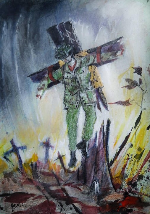 Paratrooper Military Art of Imagination. One of a Kind. My signed original drawing on stiff card, size A4.